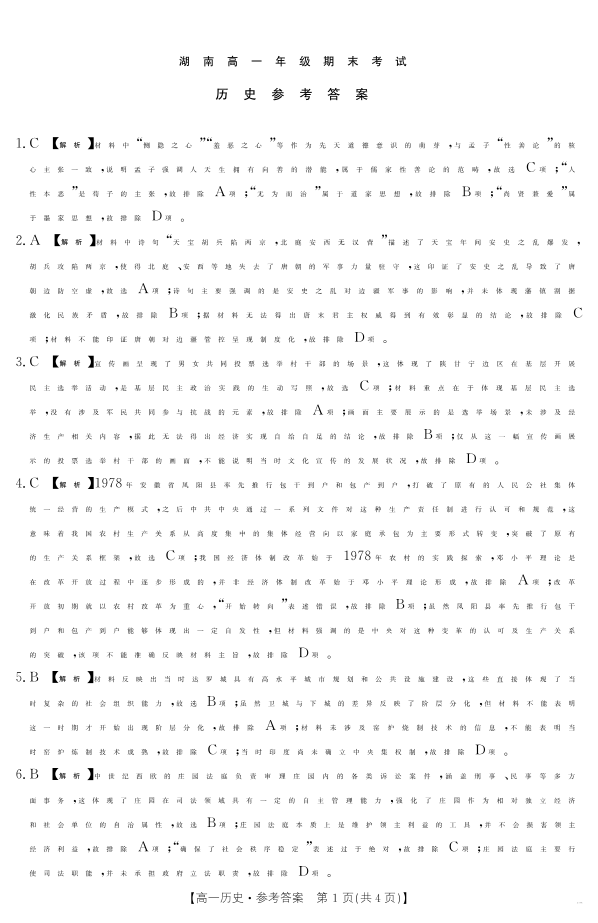 湖南省2024-2025学年高一年级下学期7月期末考试 历史答案.pdf
