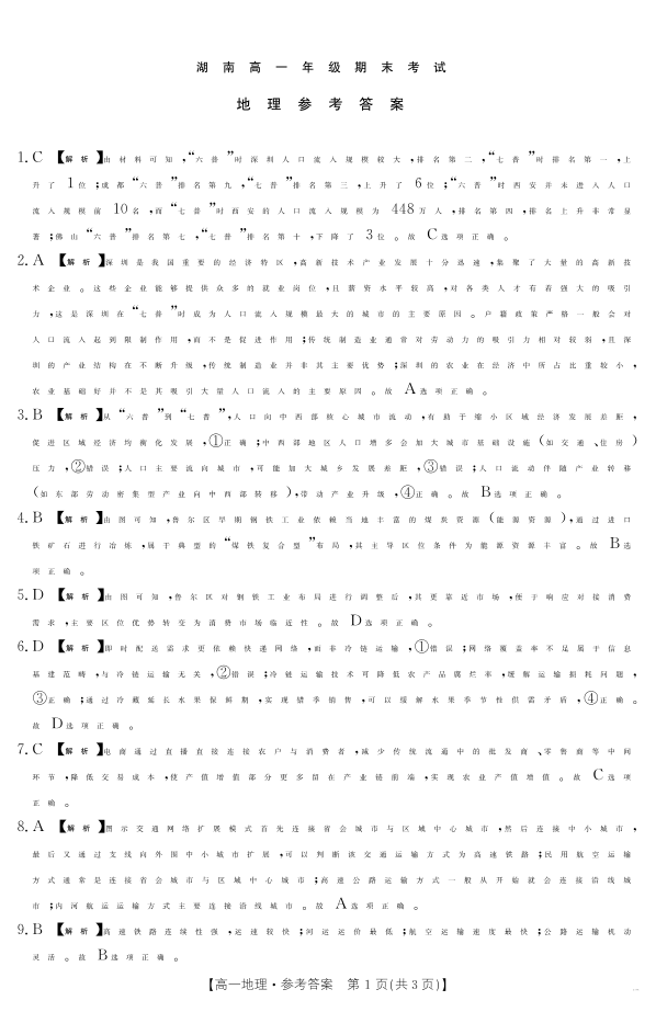 湖南省2024-2025学年高一年级下学期7月期末考试 地理答案.pdf