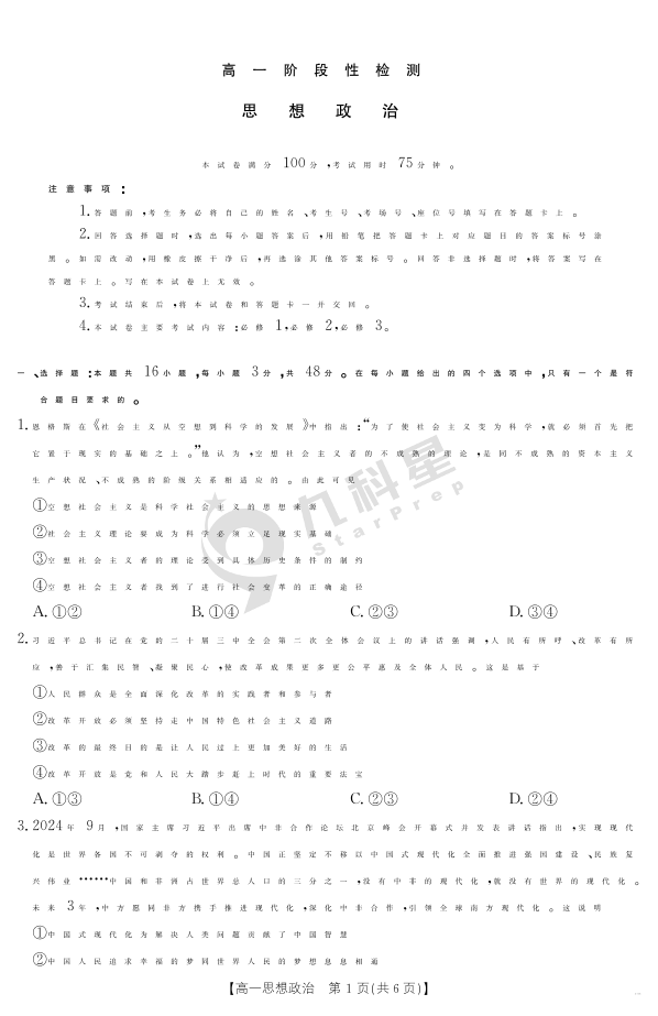 甘肃省天水市2024-2025学年高一下学期期末阶段性检测 政治.pdf