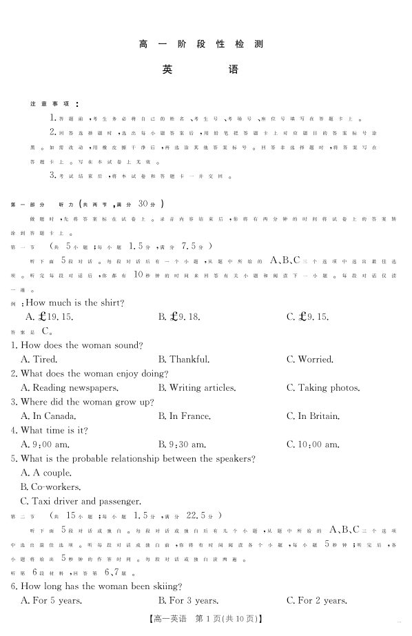 甘肃省天水市2024-2025学年高一下学期期末阶段性检测 英语.pdf