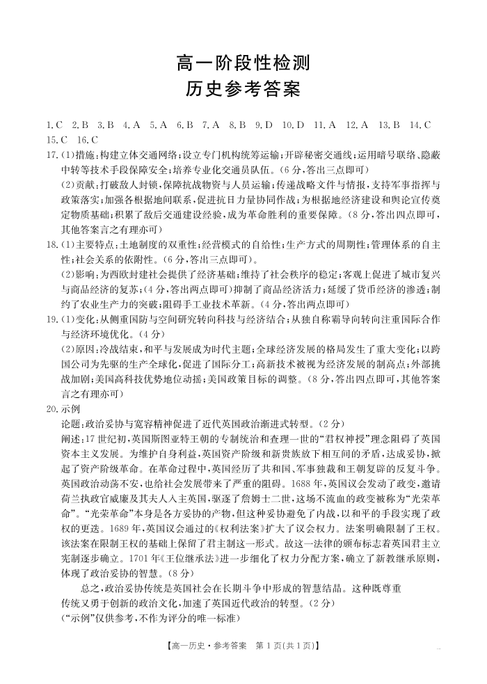 甘肃省天水市2024-2025学年高一下学期期末阶段性检测 历史答案.pdf