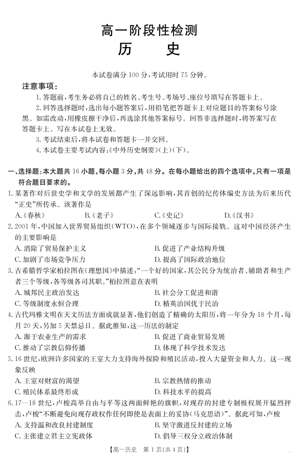 甘肃省天水市2024-2025学年高一下学期期末阶段性检测 历史.pdf