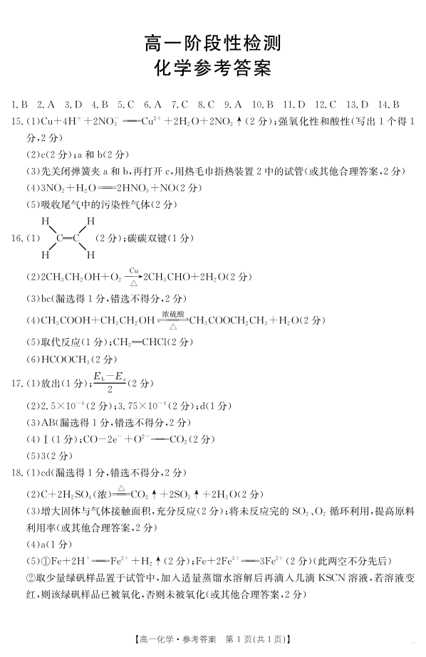 甘肃省天水市2024-2025学年高一下学期期末阶段性检测 化学答案.pdf