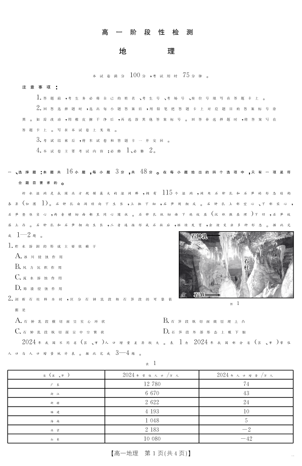 甘肃省天水市2024-2025学年高一下学期期末阶段性检测 地理.pdf