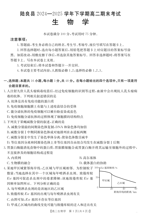 云南省曲靖市陆良县2024-2025学年高二下学期期末考试 生物学.pdf