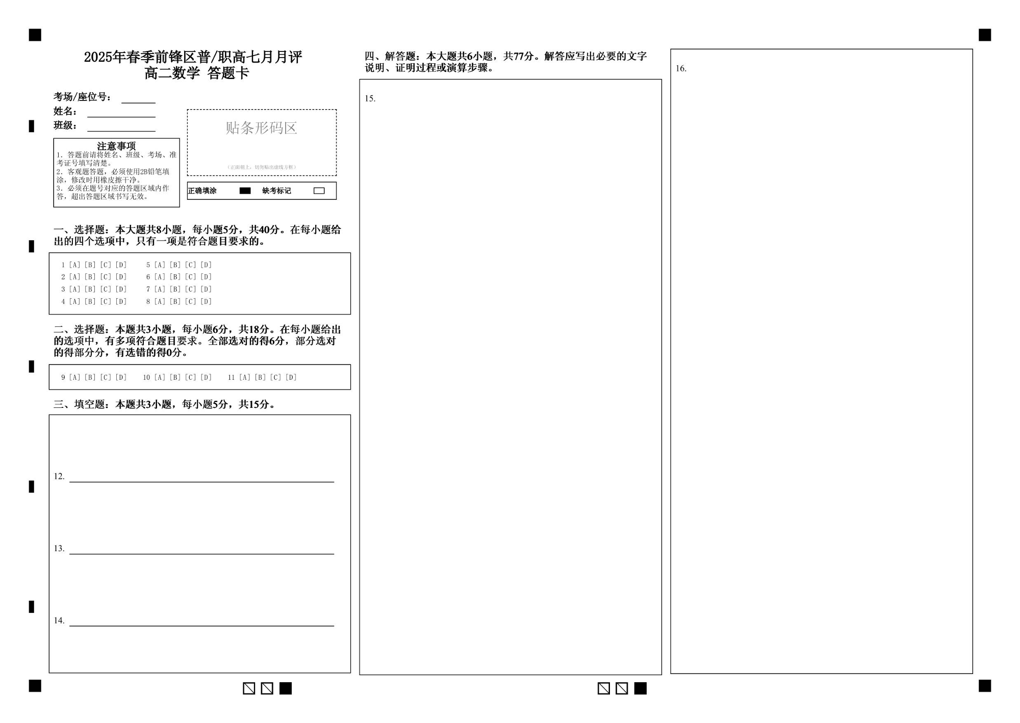2025年春季学期三地高2026届期末统测数学答题卡.pdf