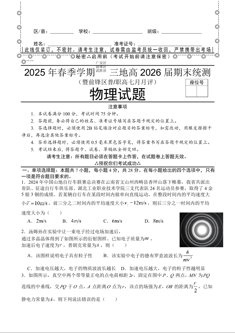 2025年春季学期三地高2026届期末统测 物理试卷(含答案).docx