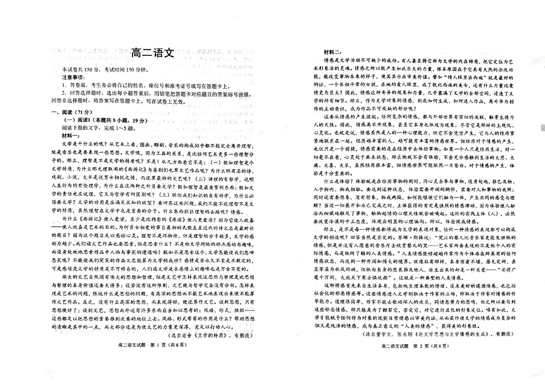 山东省威海市2024-2025学年高二下学期期末考试 语文.pdf