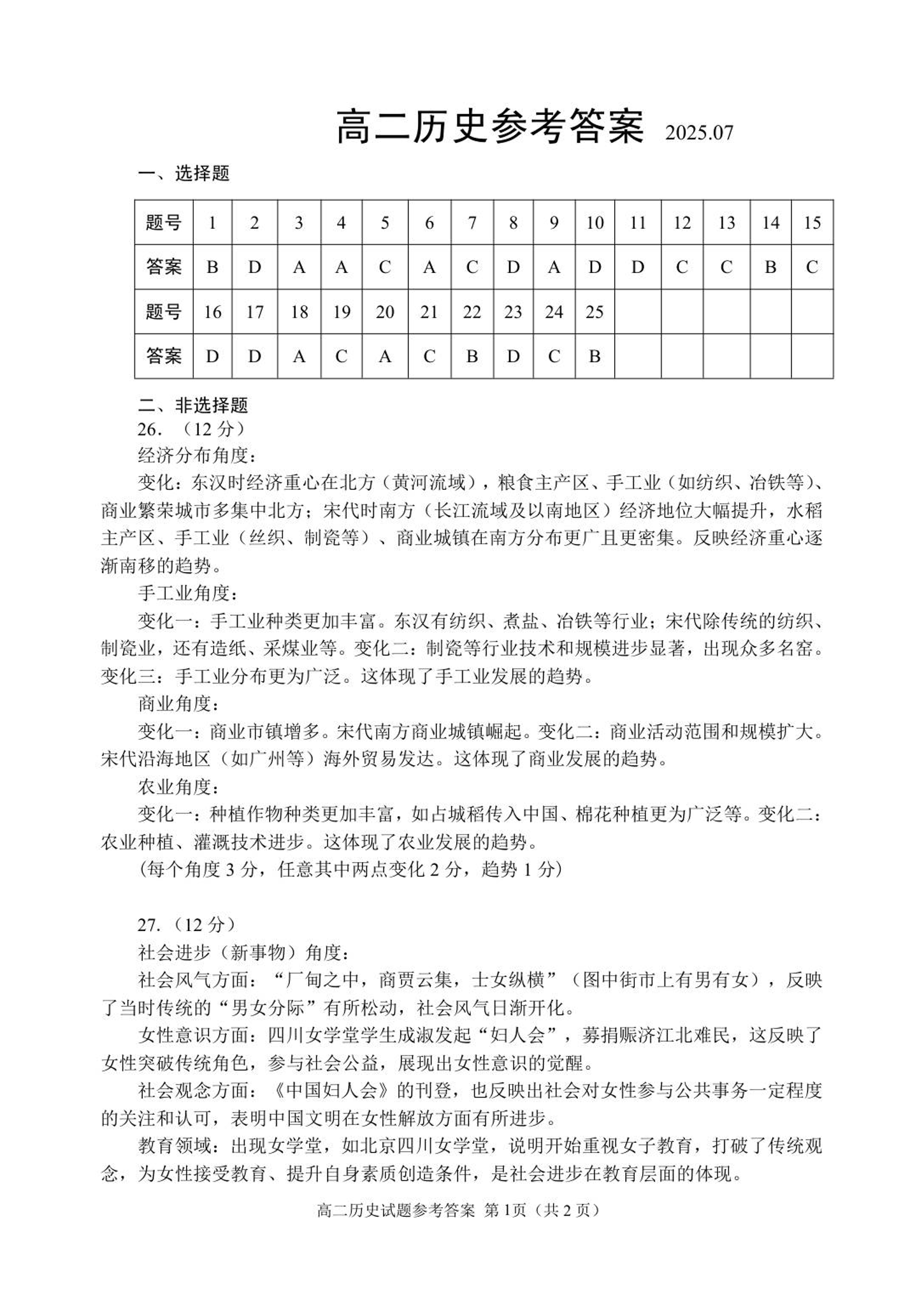 山东省威海市2024-2025学年高二下学期期末考试 历史答案.pdf