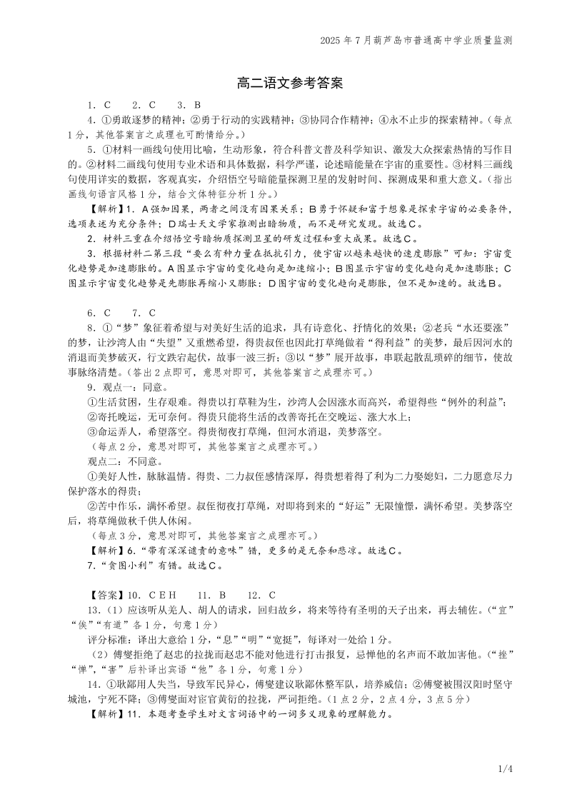 葫芦岛市普通高中2024-2025学年下学期期末考试 语文答案.pdf