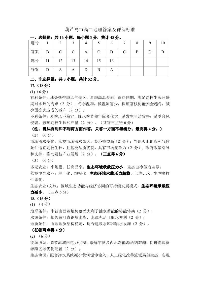 葫芦岛市普通高中2024-2025学年下学期期末考试 地理答案.pdf