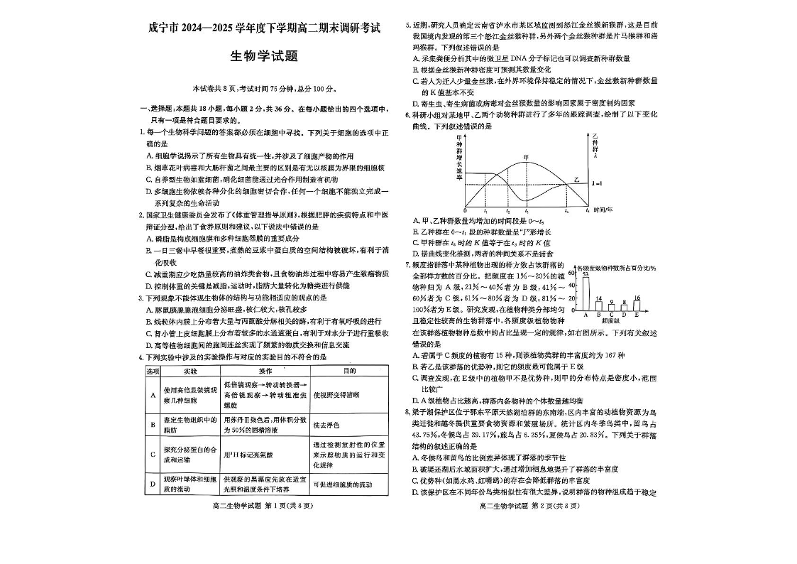湖北省咸宁市2024-2025学年高二下学期期末考试 生物试卷(含答案).pdf