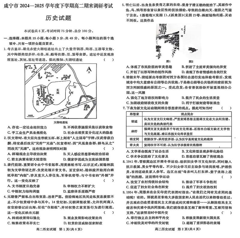 湖北省咸宁市2024-2025学年高二下学期期末考试 历史试卷(含答案).pdf