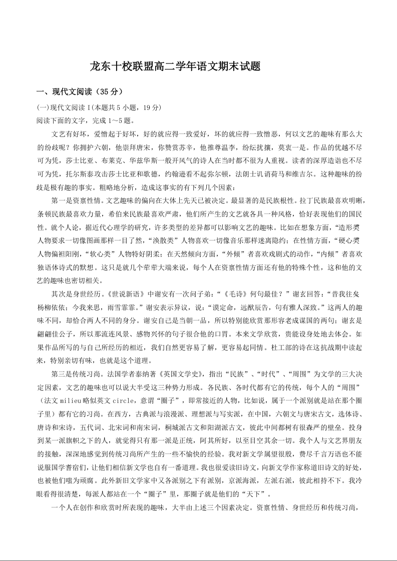 龙东十校联盟2024-2025学年高二下学期期末考试 语文试卷(含答案).docx