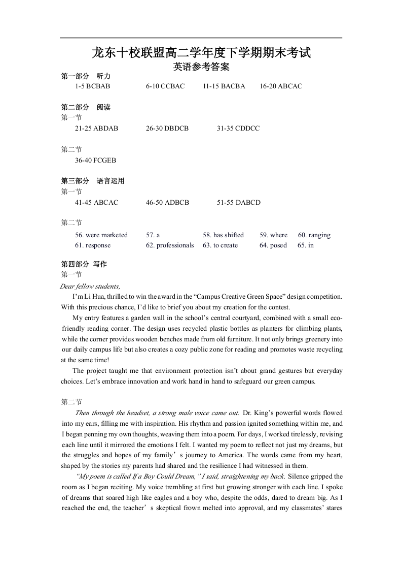 龙东十校联盟2024-2025学年高二下学期期末考试 英语答案.docx