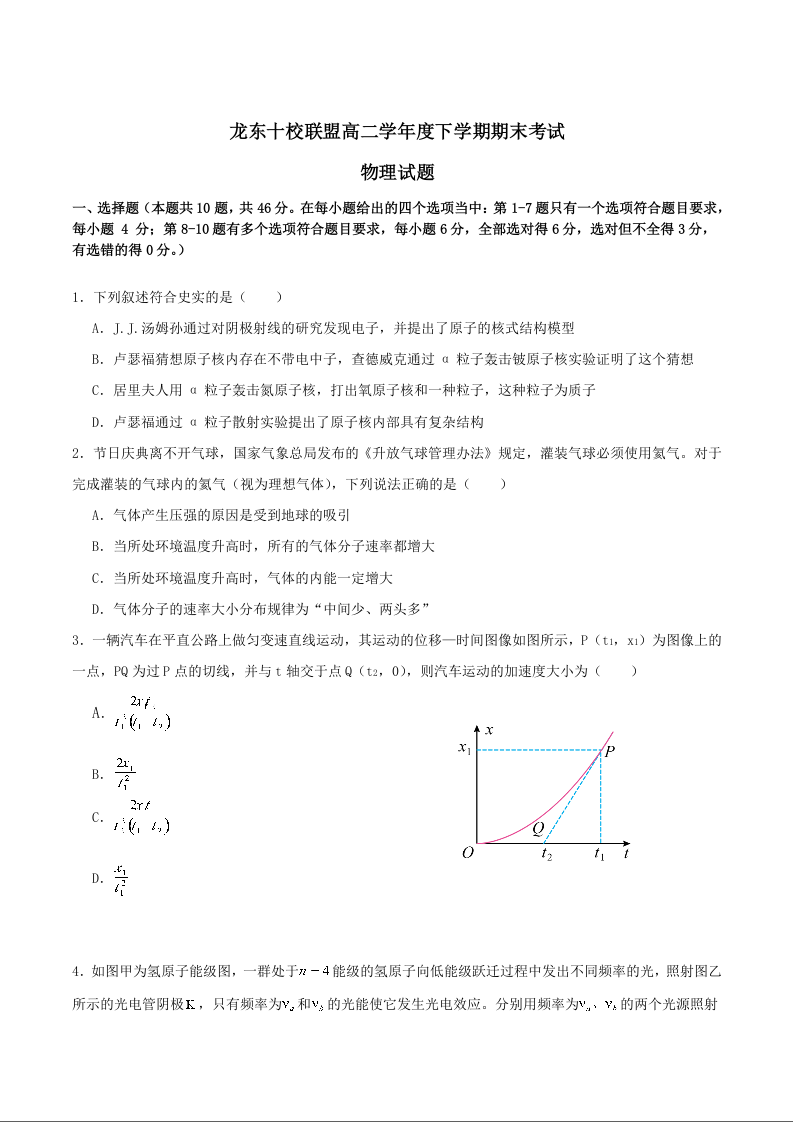 龙东十校联盟2024-2025学年高二下学期期末考试 物理试卷(含答案).docx