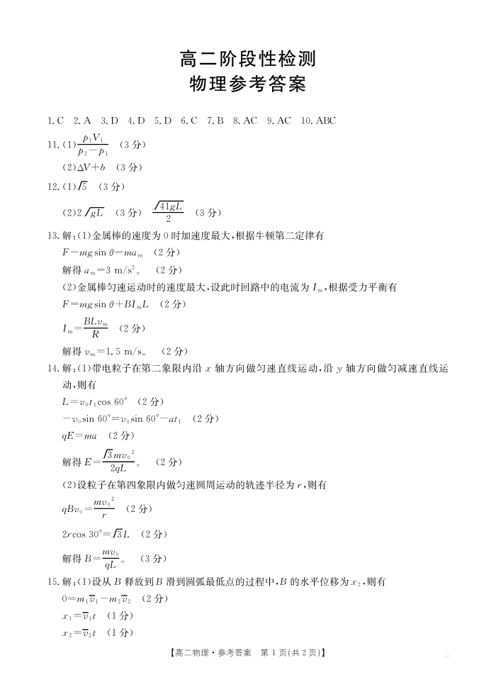 甘肃省天水市2024-2025学年高二下学期7月阶段性检测 物理答案.pdf