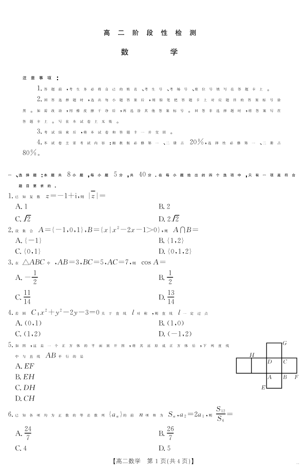 甘肃省天水市2024-2025学年高二下学期7月阶段性检测 数学.pdf
