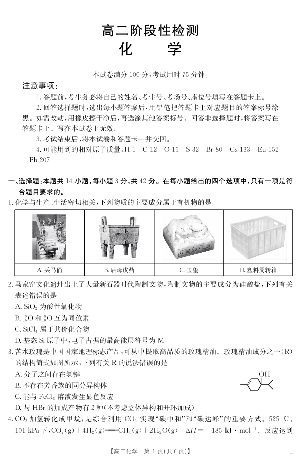 甘肃省天水市2024-2025学年高二下学期7月阶段性检测 化学.pdf