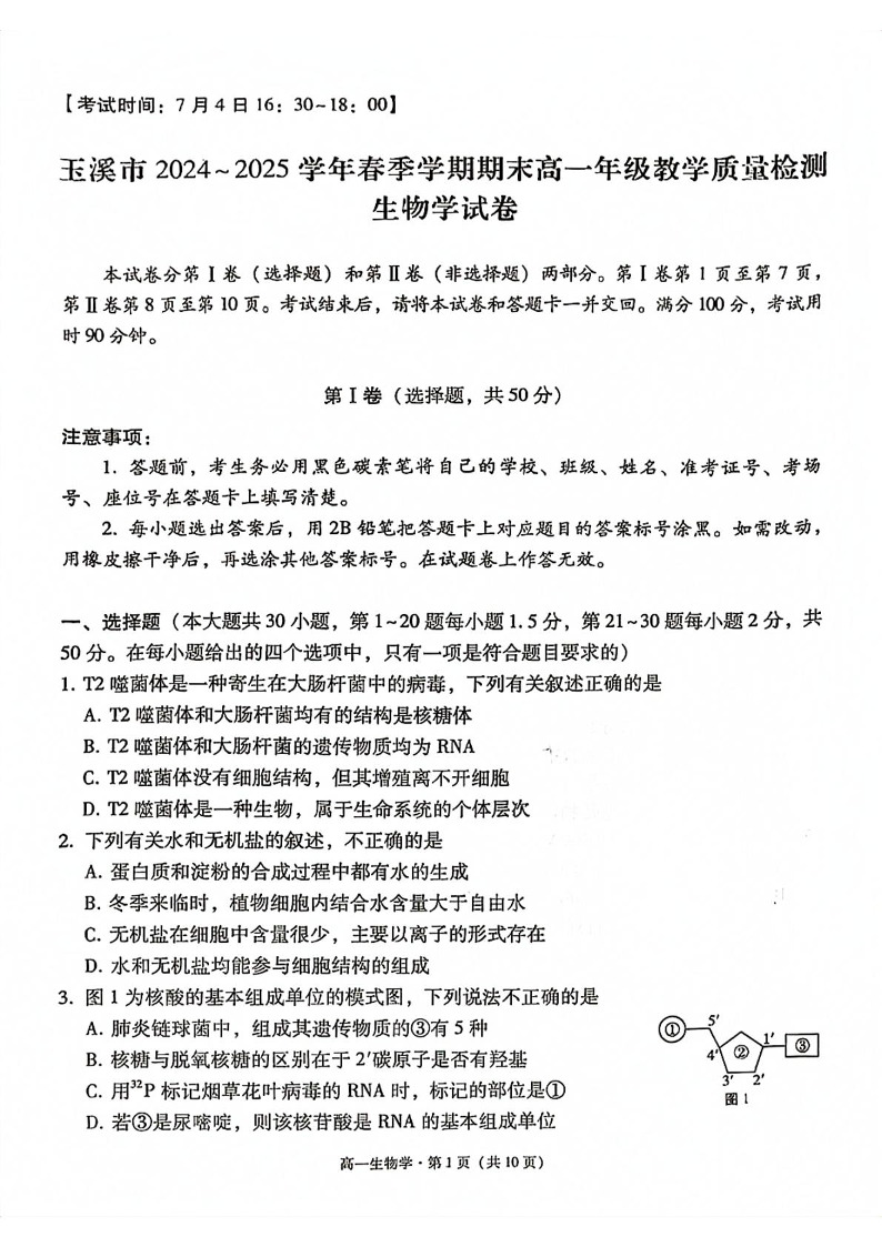 云南省玉溪市2024-2025学年高一下学期期末教学质量检测 生物(含答案).pdf