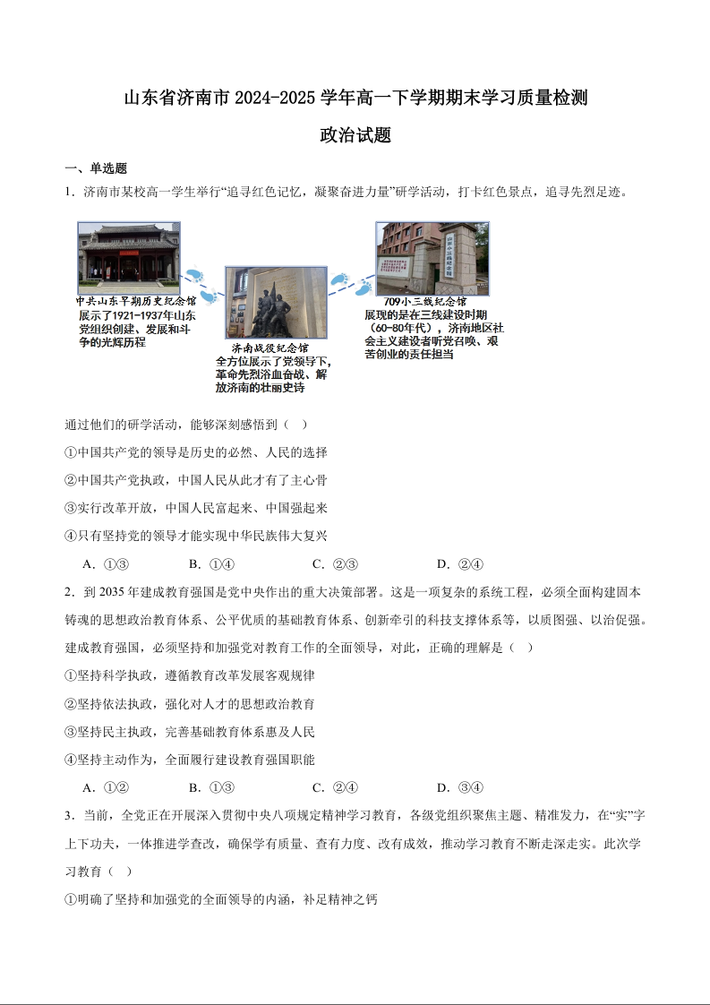 2025年7月济南市高一期末学习质量检测 政治(含答案).docx