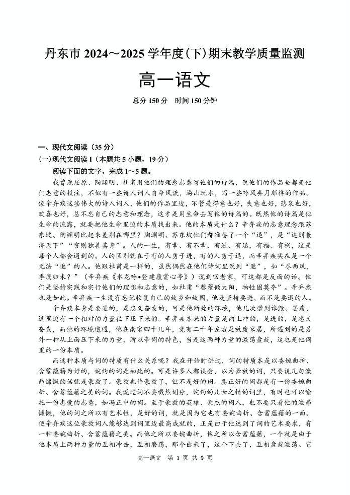 辽宁省丹东市2024-2025学年高一下学期期末教学质量监测 语文.pdf