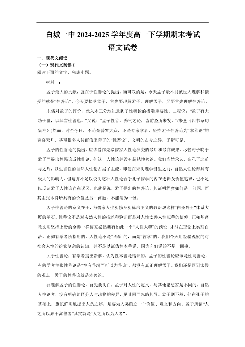 白城一中2024-2025学年度高一下学期期末考试 语文.docx