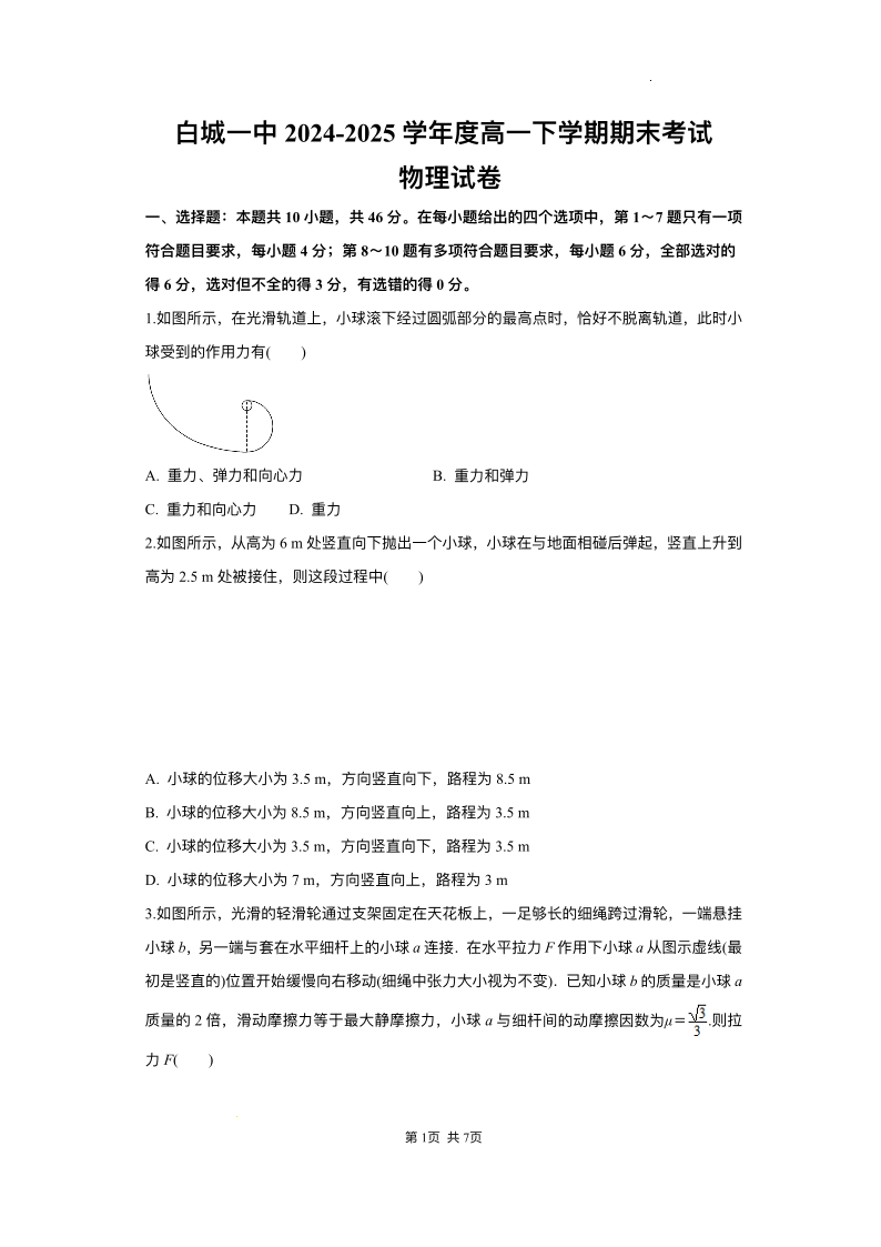 白城一中2024-2025学年度高一下学期期末考试 物理(含答案).pdf