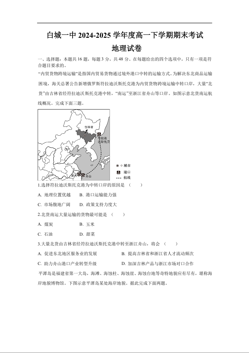 白城一中2024-2025学年度高一下学期期末考试 地理.docx