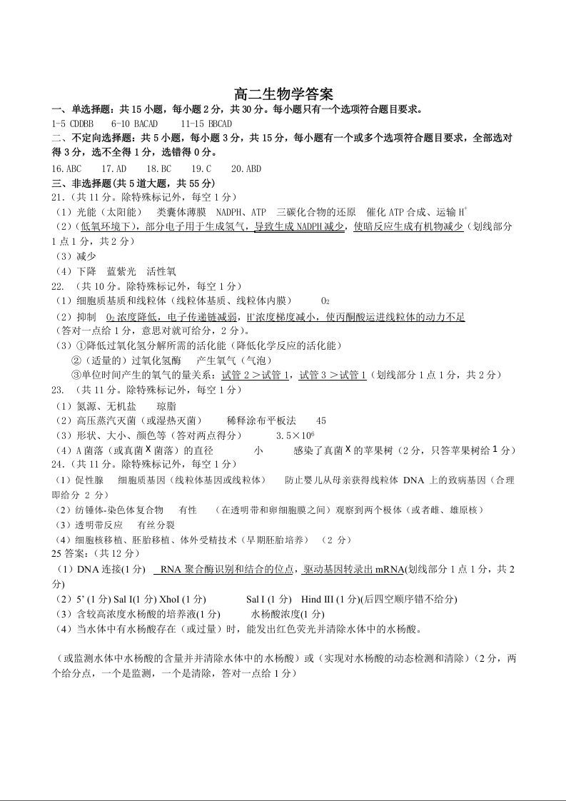 辽宁省丹东市2024-2025学年高二下学期期末教学质量监测 生物答案.docx