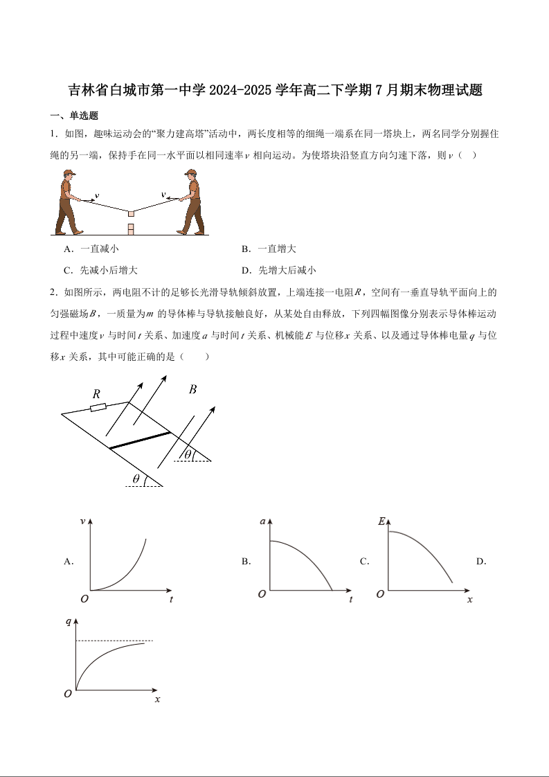 吉林省白城市第一中学2024-2025学年高二下学期期末考试 物理(含答案).docx