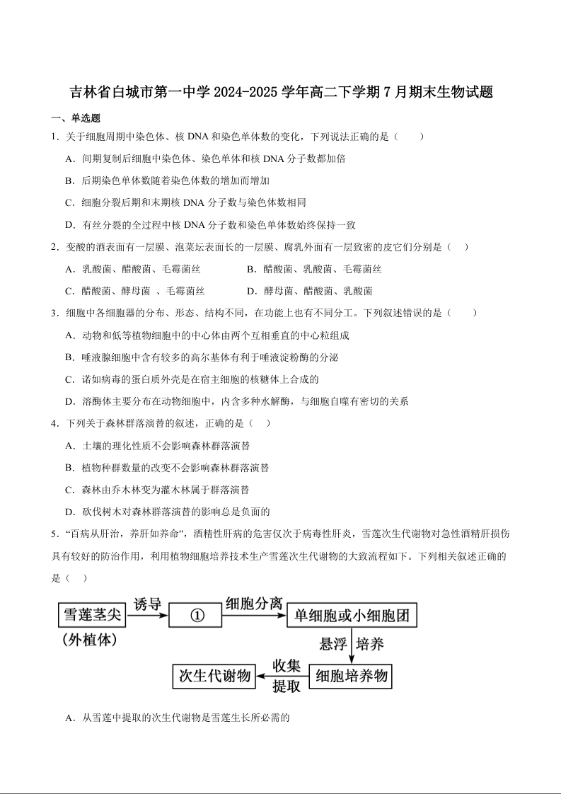 吉林省白城市第一中学2024-2025学年高二下学期期末考试 生物(含答案).docx