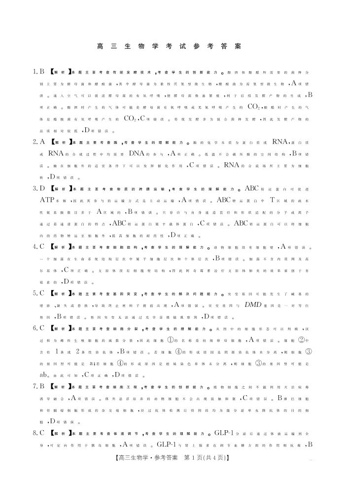 广西2025-2026学年高三上学期开学考试 生物答案.pdf