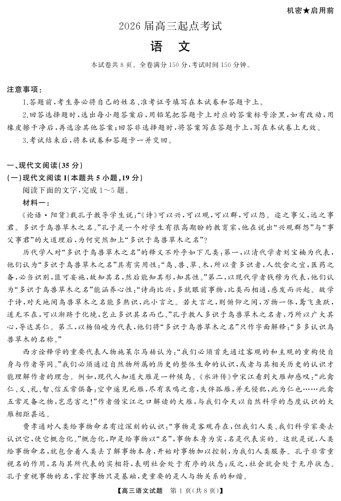 湖南省·天壹名校联盟2026届高三起点考试 语文.pdf