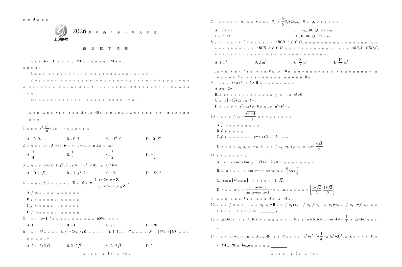 2026届新高三第一次大联考 数学.pdf