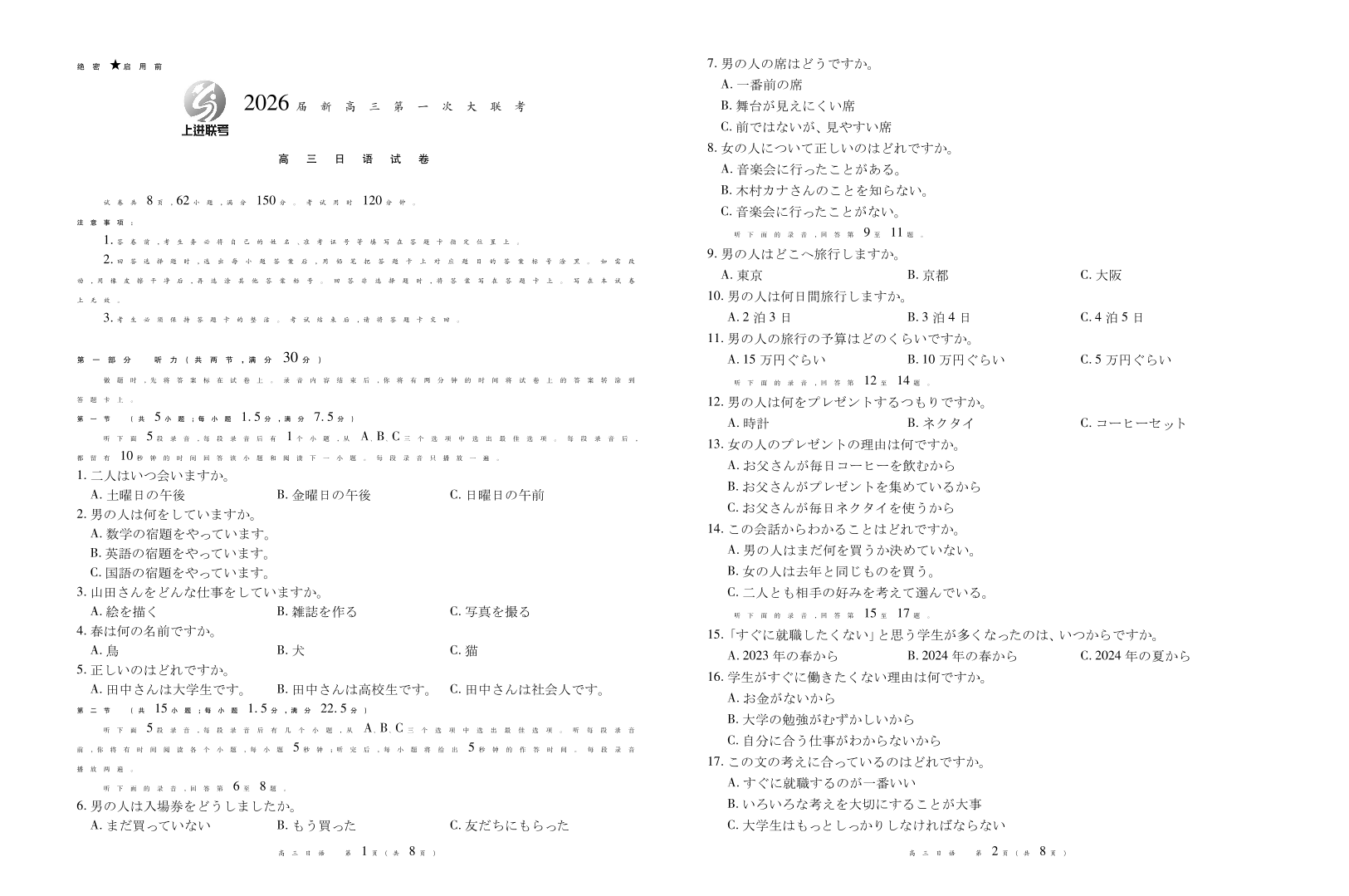2026届新高三第一次大联考 日语.pdf
