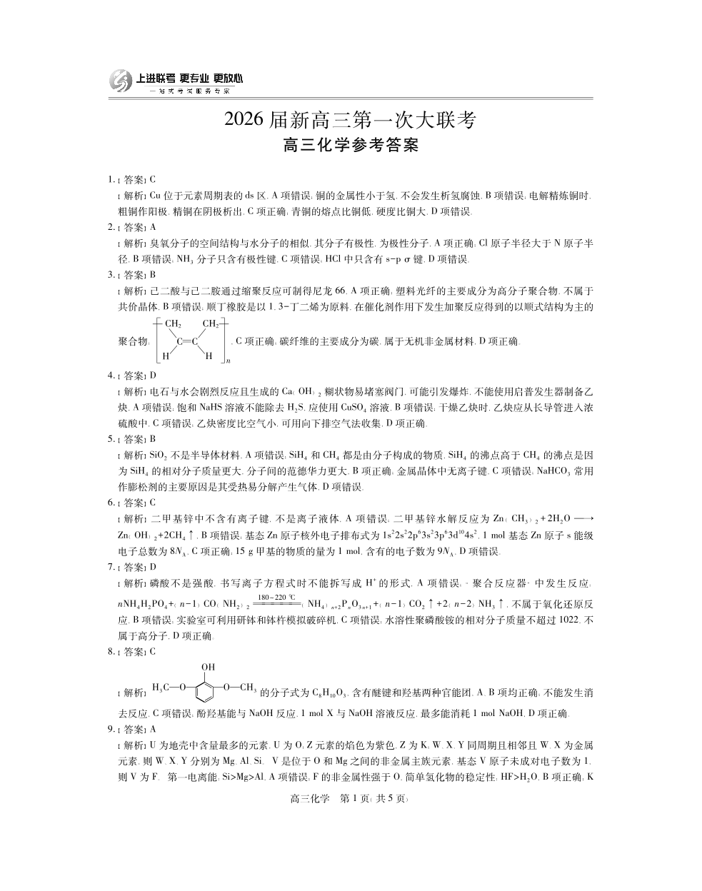 2026届新高三第一次大联考 化学答案.pdf