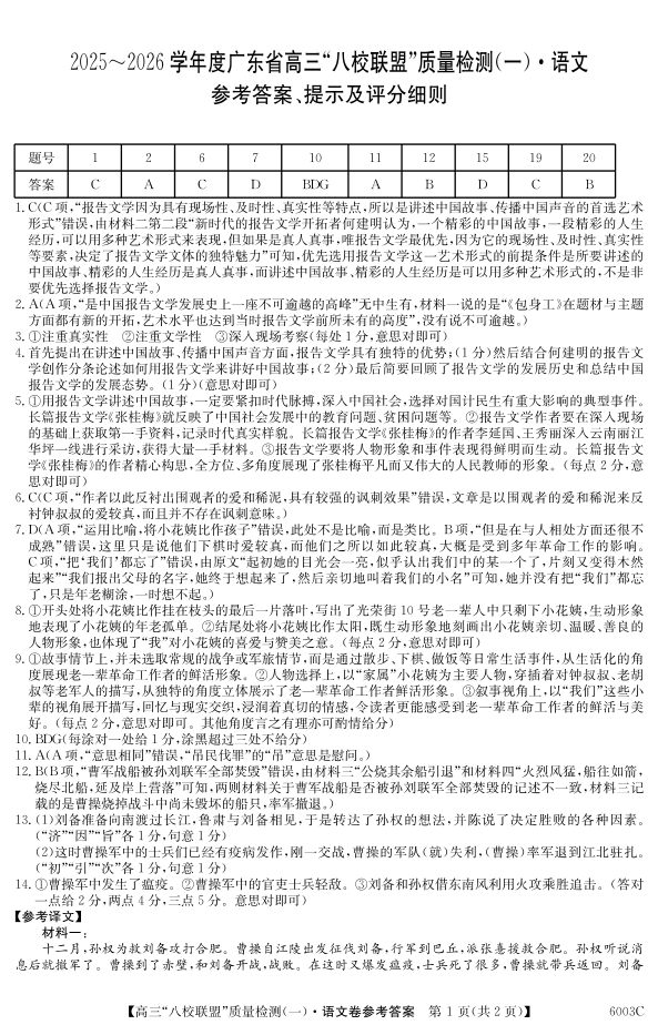 广东省2025~2026学年度高三“八校联盟”质量检测(一)语文答案.pdf