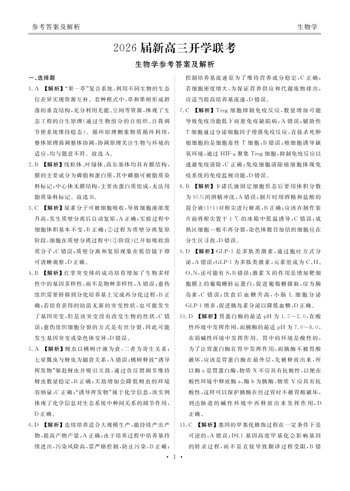 广东省衡水金卷2026届新高三上学期开学联考 生物答案.pdf