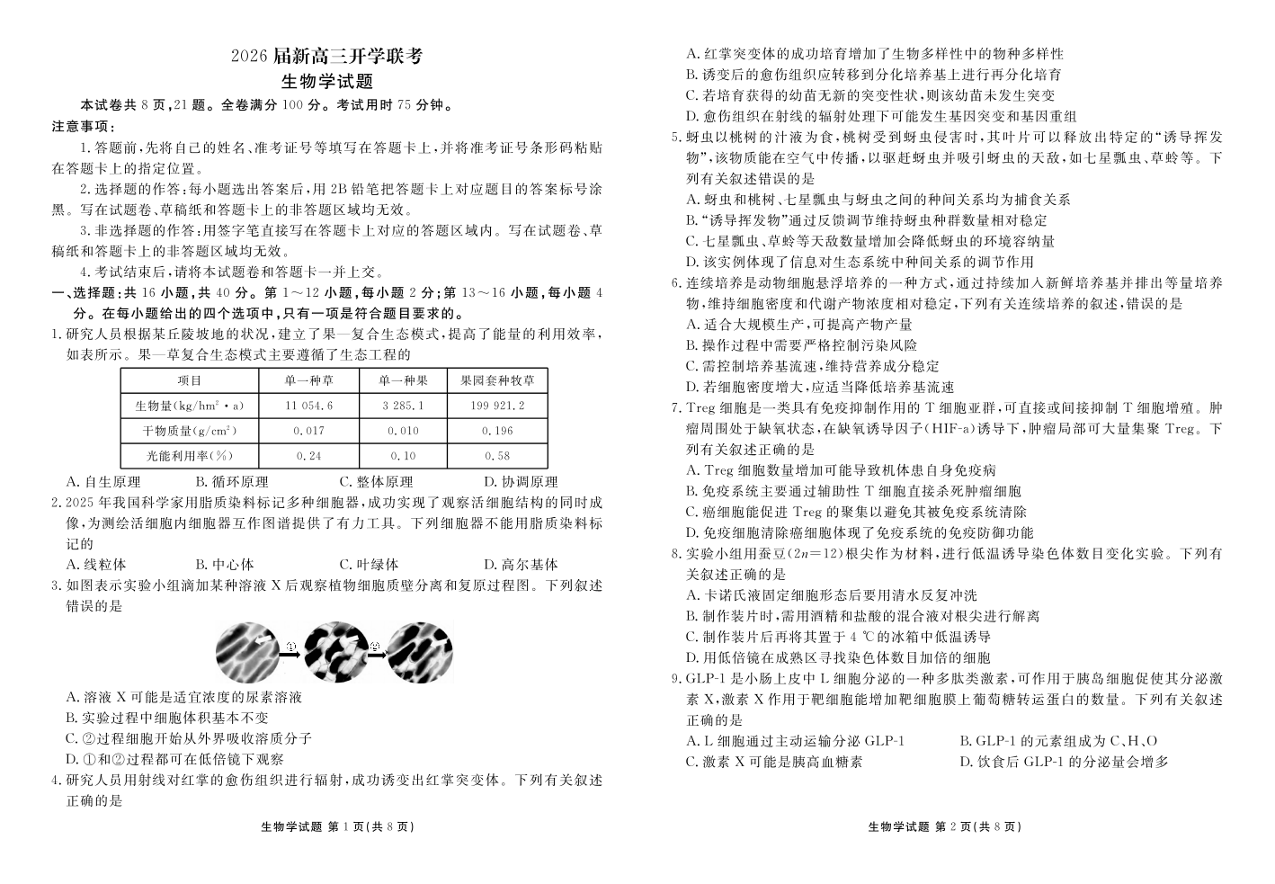 广东省衡水金卷2026届新高三上学期开学联考 生物.pdf
