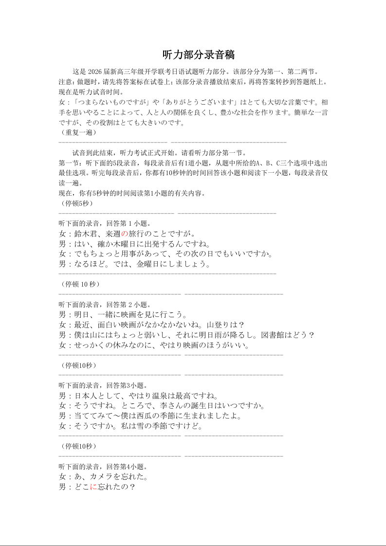 广东省衡水金卷2026届新高三上学期开学联考 日语听力原文.docx
