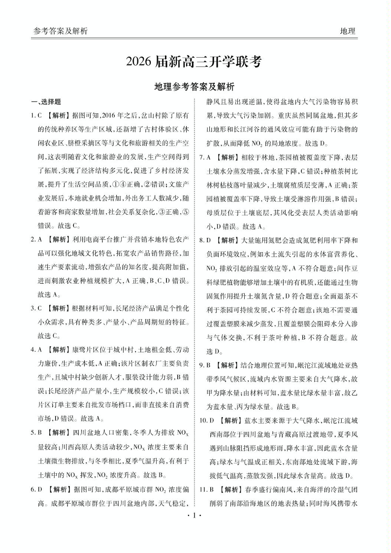 广东省衡水金卷2026届新高三上学期开学联考 地理答案.pdf