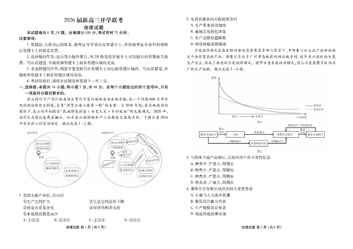 广东省衡水金卷2026届新高三上学期开学联考 地理.pdf