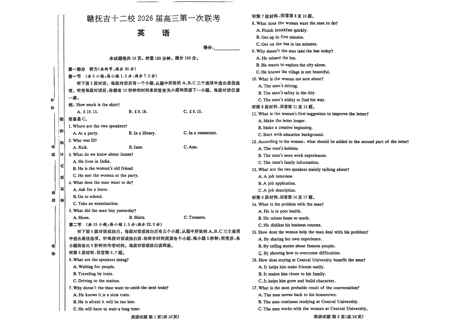 赣抚吉十二校2026届高三第一次联考 英语.pdf