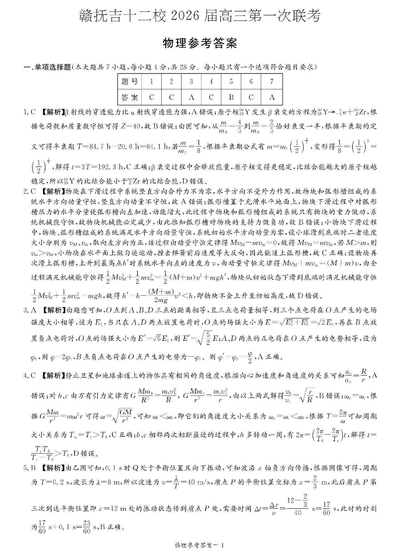 赣抚吉十二校2026届高三第一次联考 物理答案.pdf