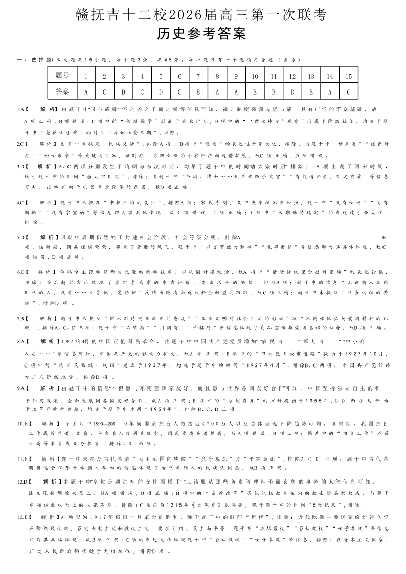 赣抚吉十二校2026届高三第一次联考 历史答案.pdf