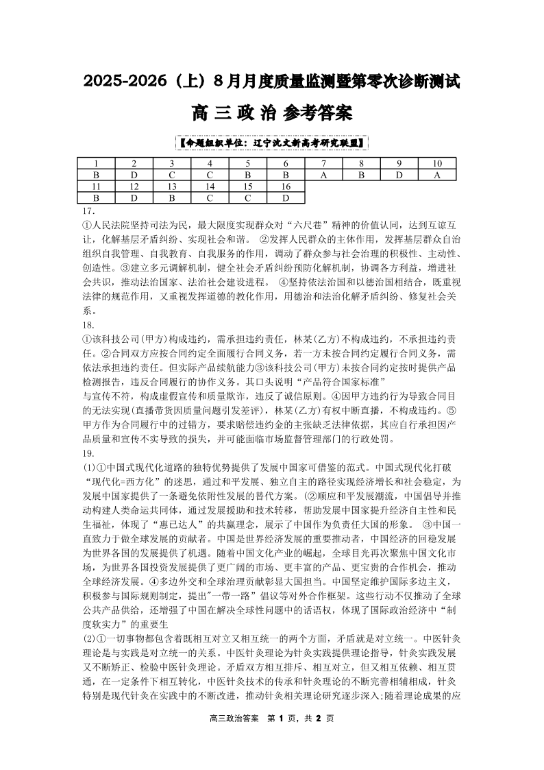 2025-2026(上)8月月度质量监测暨第零次诊断测试 高三政治答案.pdf