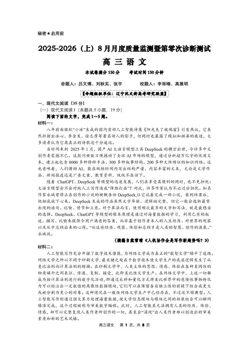 2025-2026(上)8月月度质量监测暨第零次诊断测试 高三语文.pdf