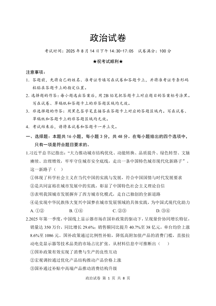 湖北省腾云联盟2025-2026学年度上学期高三年级8月联考 政治.pdf