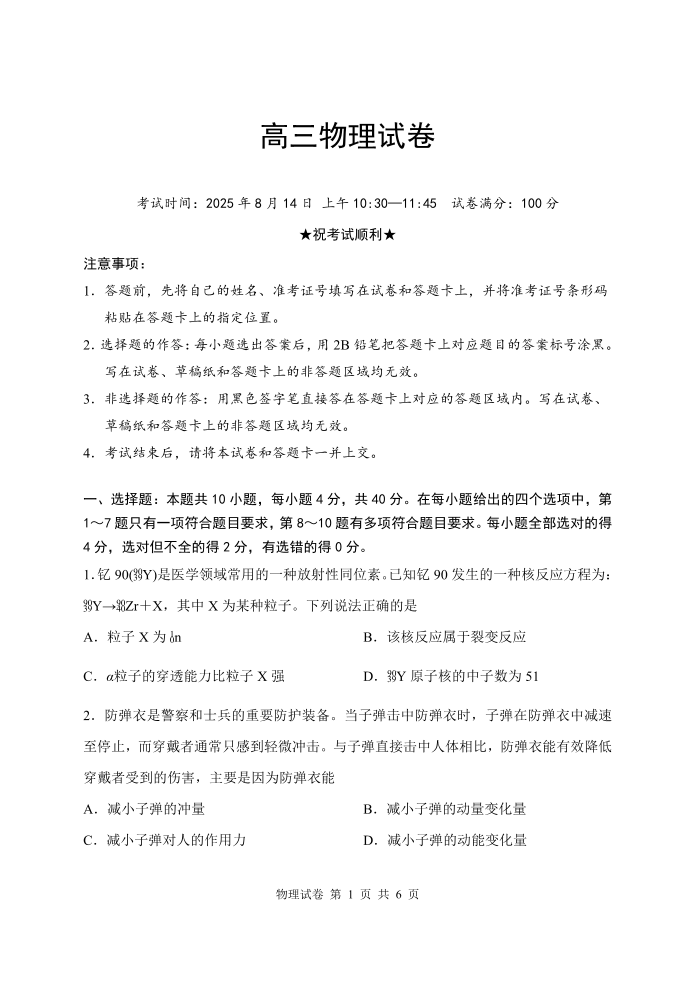 湖北省腾云联盟2025-2026学年度上学期高三年级8月联考 物理.pdf